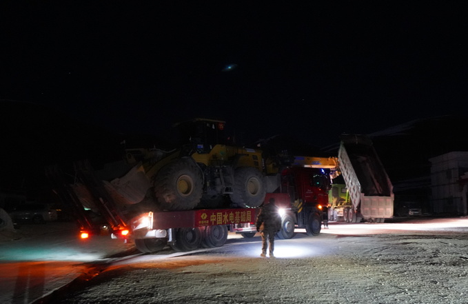 11月6日,接到昂仁县委、县政府紧急救援通知后,水电基础局高度重视,立即启动应急预案,指令就近的西藏帕孜水利枢纽工程项目部全力投入抢险。项目部迅速组建抢险队伍,调集5台专业设备组成救援车队。当日下午5时30分,队员们冒着零下二十多度的严寒,踏上征程。救援车队穿越265公里险峻山地雪路,历经低温、暗冰、积雪与高海拔缺氧等考验,连续奋战8个多小时,于11月7日凌晨2时成功抵达措迈乡。队员们不顾疲劳,连夜勘察现场,制定抢通方案,迅速投入抢险施工。